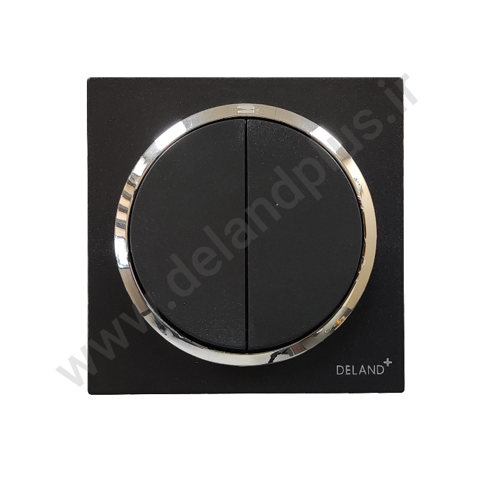 کلید دوپل مدل آوا با رنگ مشکی و قاب نقرهای، امکان کنترل دو مدار نورپردازی به صورت مجزا را فراهم میکند. مناسب برای سالنهای پذیرایی و محیطهای اداری.